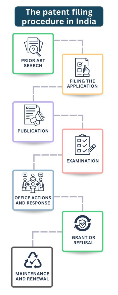 Filing the Application: Once the patent application is prepared, it can be filed with the Indian Patent Office. The application can be filed either online or through physical submission at the appropriate Patent Office based on the jurisdiction.